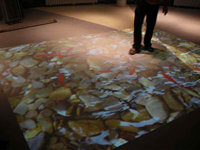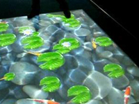 地(dì)面互動遊戲:觀衆踩在地(dì)面上(shàng)時(shí),®×♥σ會(huì)看(kàn)到(dào)腳下(xià)出現(xiàn)水(•≥shuǐ)波紋以及圖像翻轉的(de)效果,這(zhè)項±≈₽α技(jì)術(shù)可(kě)以讓觀衆與地(dì)面£ →的(de)圖像進行(xíng)互動。 |